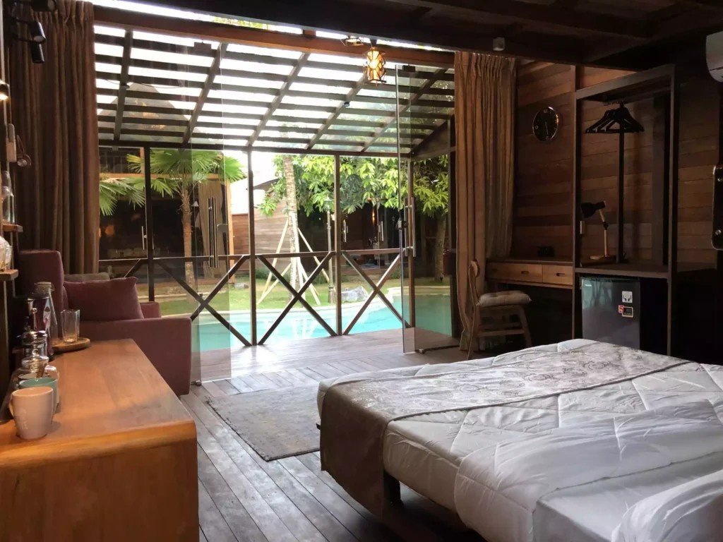 Изживейте очарованието на самостоятелни бунгала в лагуната Бали, където комфортът среща спокойствието. Това самостоятелно бунгало разполага с уютна стая 4 м х 4 м с луксозно легло 2 м х 1,6 м, идеално за 2 възрастни или семейство (2 възрастни и 2 деца). Насладете се на обособено работно място с бюро и се отпуснете в зоната за отдих с удобен фотьойл, Bluetooth слушалки и високоговорител. За забавление на ваше разположение е проектор със сгъваем екран.